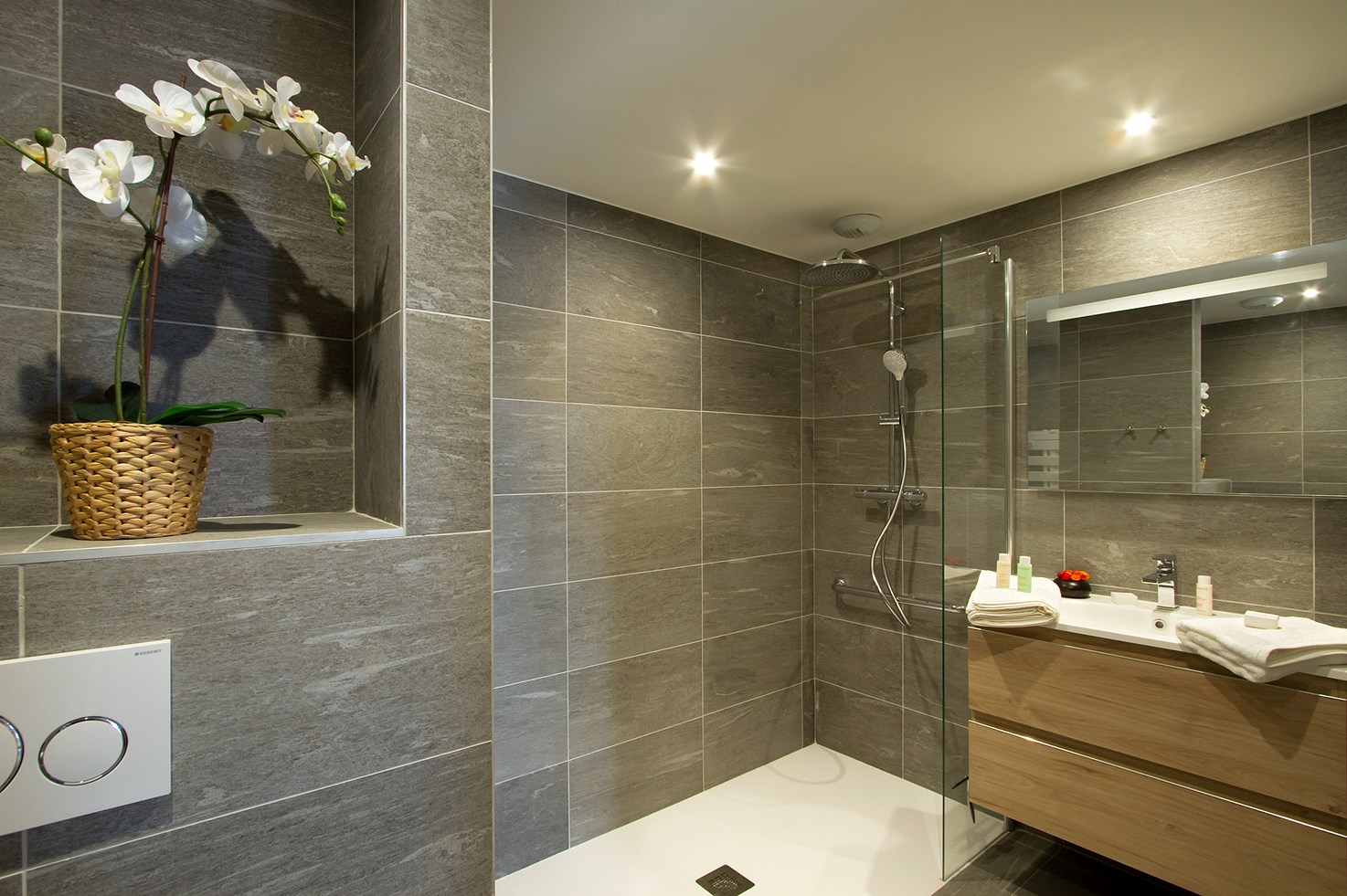Il se compose d'une suite parentale avec salle de douche et WC, d'une deuxième chambre, d'un coin cabine, d'une salle de bain et d'un WC séparé.